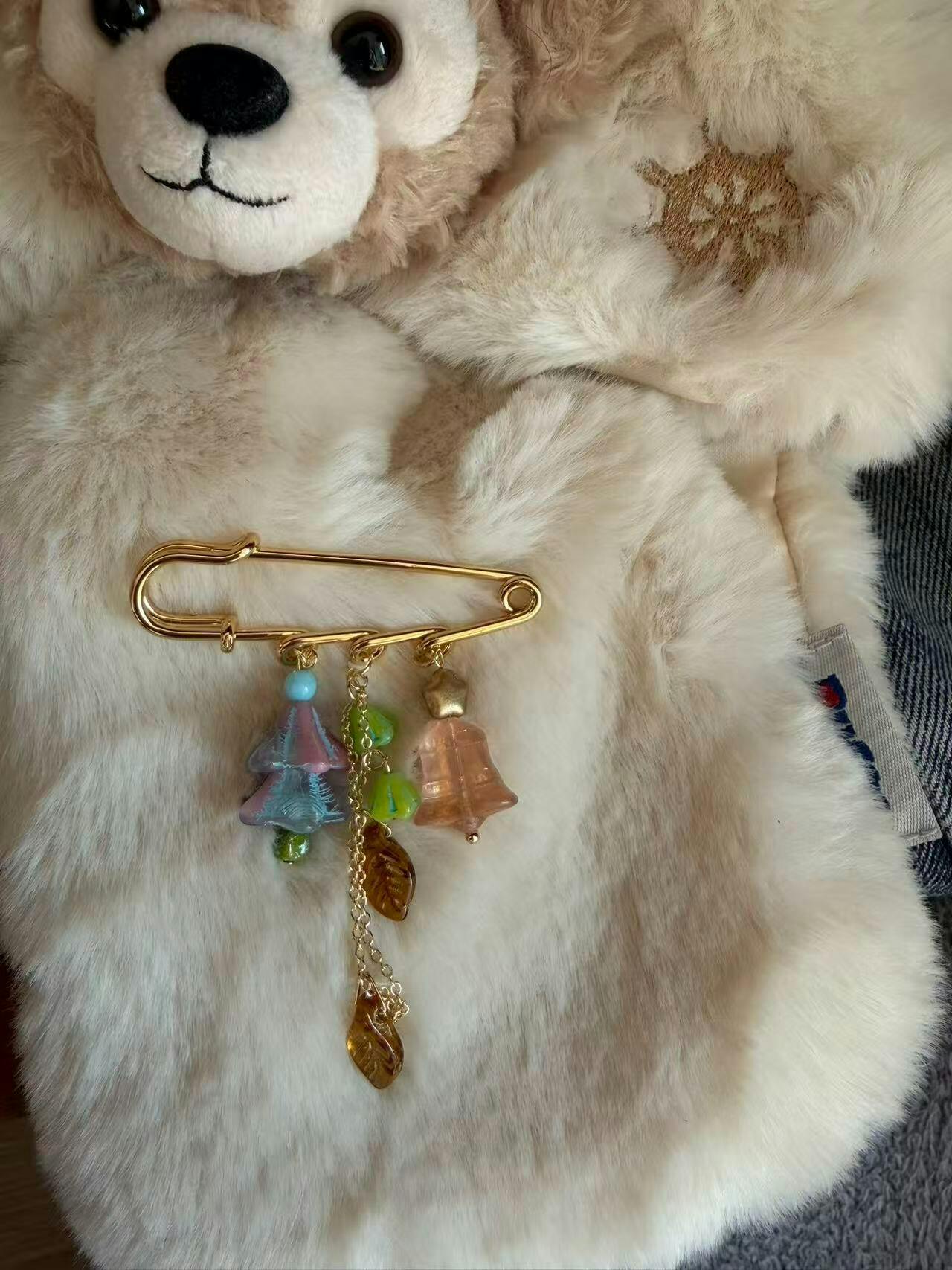 Pin on a dose of festive charm with our Holiday Tree & Bell Brooch. This exquisite piece brings together two classic symbols of the season—a glistening, full-bodied tree and a graceful, dangling bell—crafted to capture the light, the sound, and the sheer joy of the holidays.